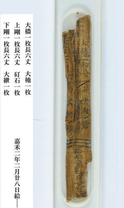 东吴占据着水网密布的江东地区,水军的地位举足轻重。滚滚长江是汉末三国的主战场之一,赤壁之战、夷陵之战、广陵之战等大规模战役都是水军和战船的重要舞台。根据史书记载可知,当时的水军规模和战船体量都非常大,水战战术相当成熟。文献提到的战船种类有“蒙冲”“斗舰”“楼船”“走舸”等,分别承担不同的作战任务。目前尚未发现完整的东吴战船遗物,不过从“三国展”中展示的长沙走马楼吴简里还是能够一窥江东船舶的风采。其中一枚简恰好记录了船上所用的樯、矴、杝等部件,根据樯的尺寸可推测船长达17米左右。这枚简也是古代帆船的珍贵资料之一。