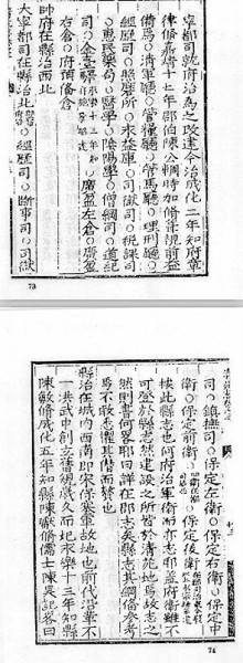 虽然是插花分布,但卫所与相邻的府州县对辖区管辖权的划分很清晰。嘉靖《清苑县志·城池》说:“此县志也,何府治军卫亦志耶?盖府卫虽不可登于县志,然建设之所皆于清苑地焉,故志之。何书略耶?曰详在郡志矣,县志其纳,备参考焉,不敢悉惧其僭而赘也。”万历《定襄县志·田赋志》也记载了卫所和州县地近而不统属的关系,“按:屯地与民间相杂,其所从来靡可考辨,顾同一地耳。在民每石派粮一两,余屯则五钱,不啻损半犹然逋赋,何哉也?屯余自有丁差,业属本卫审编”。