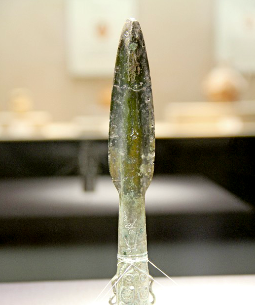 荥经县严道镇同心村战国古墓群出土的“成都矛”。“成都”青铜矛,把成都的得名推至战国,比史书记载成都得名于秦汉,要早两百多年(图片来源:中国社会科学网)