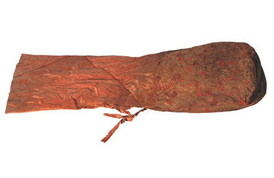 长沙马王堆一号汉墓出土的4件“信期绣”香囊(见图),是难得的保存至今较为完整的汉代布帛香囊。其中一件出土于墓室北边厢,另三件放在东边厢出土的一件竹笥中。4件香囊整体形制相同,分为领部、腰部和底部,腰部有带用于封口系戴。腰以上的领部和囊里都用斜裁的素绢缝制,腰以下的囊部除1件黄褐色菱纹绮香囊用香色罗绮外,都以精美的信期绣缝制。香囊内均盛有蕙草、茅香、花椒、辛夷等香料。