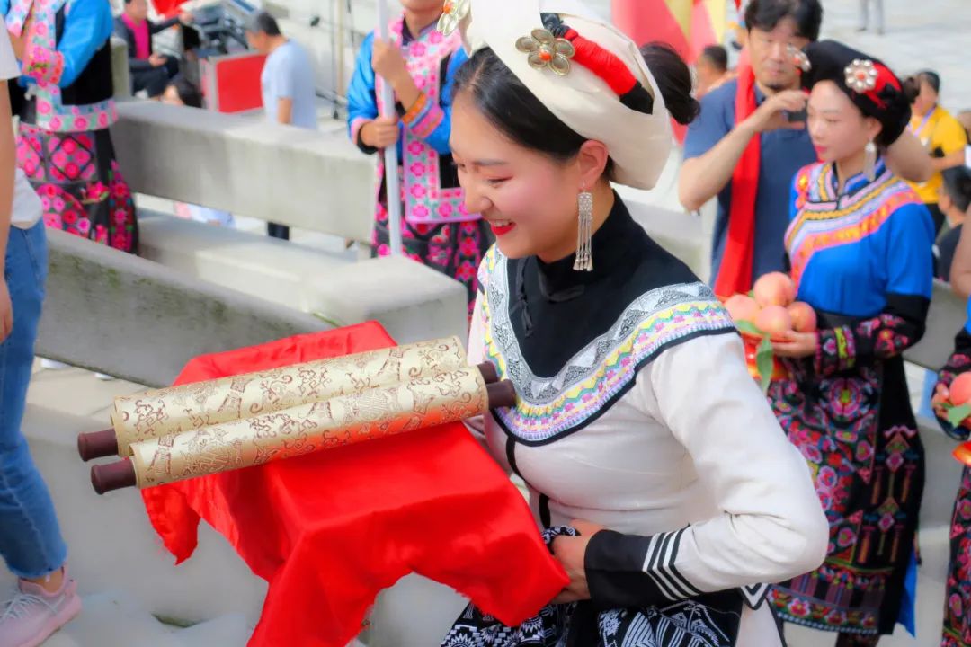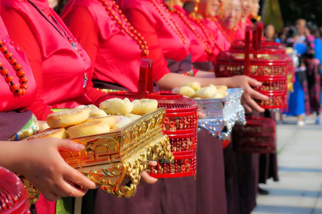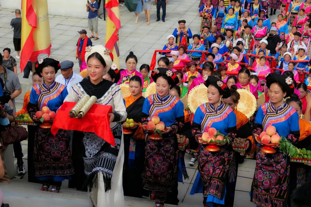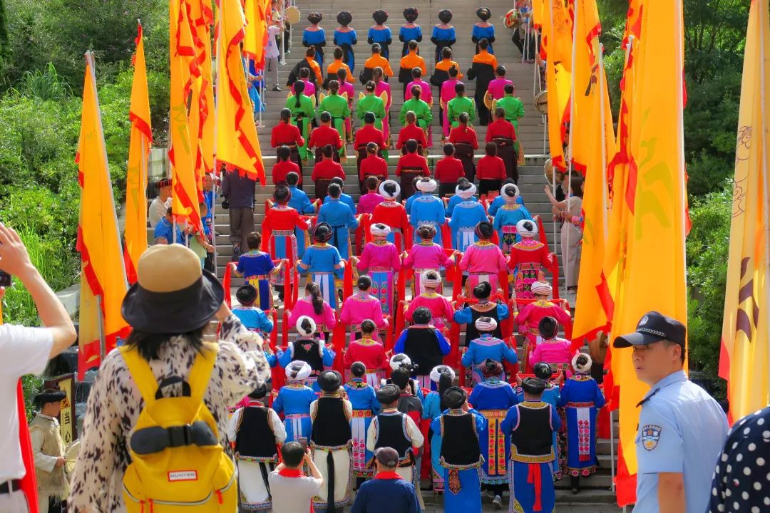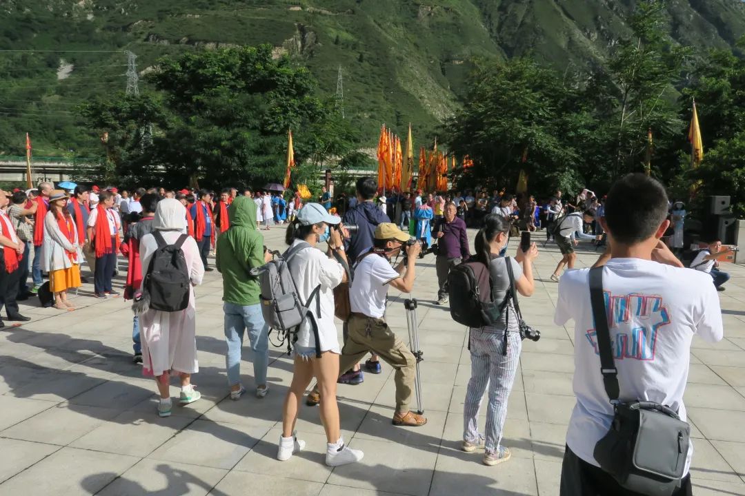 随后,现场逐一向大禹敬献花篮、敬献羌红、恭读祭文、行礼、颂歌献舞等,现场华夏儿女全体肃立,手持羌红、面向大禹行礼祭拜。