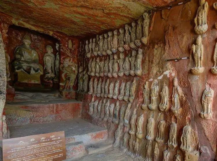 光有大云寺还不够,千佛崖上还要有“大云洞”。大云洞位居千佛崖崖壁的中心,是千佛崖规模最大的洞窟。由此可见这位女帝的威势。直至今日,还有广元人说,大云洞中的弥勒佛身材修长,眉似新月,樱桃小口,就是依照武则天的模样刻成的。
