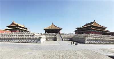 图为坐落在三台之上的三大殿。
