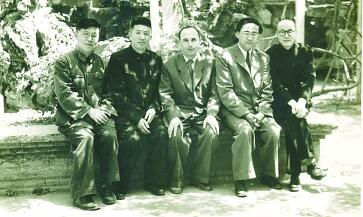 一九五六年苏联、蒙古学者访问中国科学院历史研究所第三所时的合影。由左至右分别为刘桂五、刘大年、苏联学者、蒙古学者、范文澜。