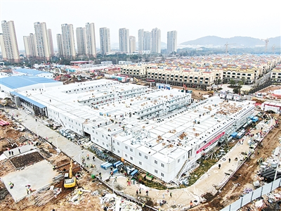 2月2日,经过日夜紧张施工,武汉火神山医院正式落成。新华社发