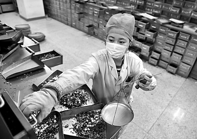 2月24日,中药师在安徽中医药大学第一附属医院药房调剂中药。新华社发