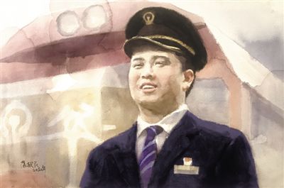 叶献民水彩画《铁路榜样》——沉稳的藏青色,作为职业气质鲜明的色彩,既折射出中国铁路建设高质量发展的进程,更反映出铁路人严谨认真、甘于奉献的精神面貌。