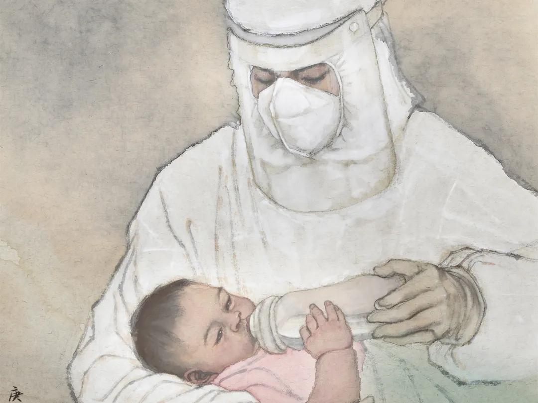 刘永健水彩画《心系苍生》——圣洁的白色,饱含医务人员对生命的敬畏,照亮以仁心仁术造福人民的信念。