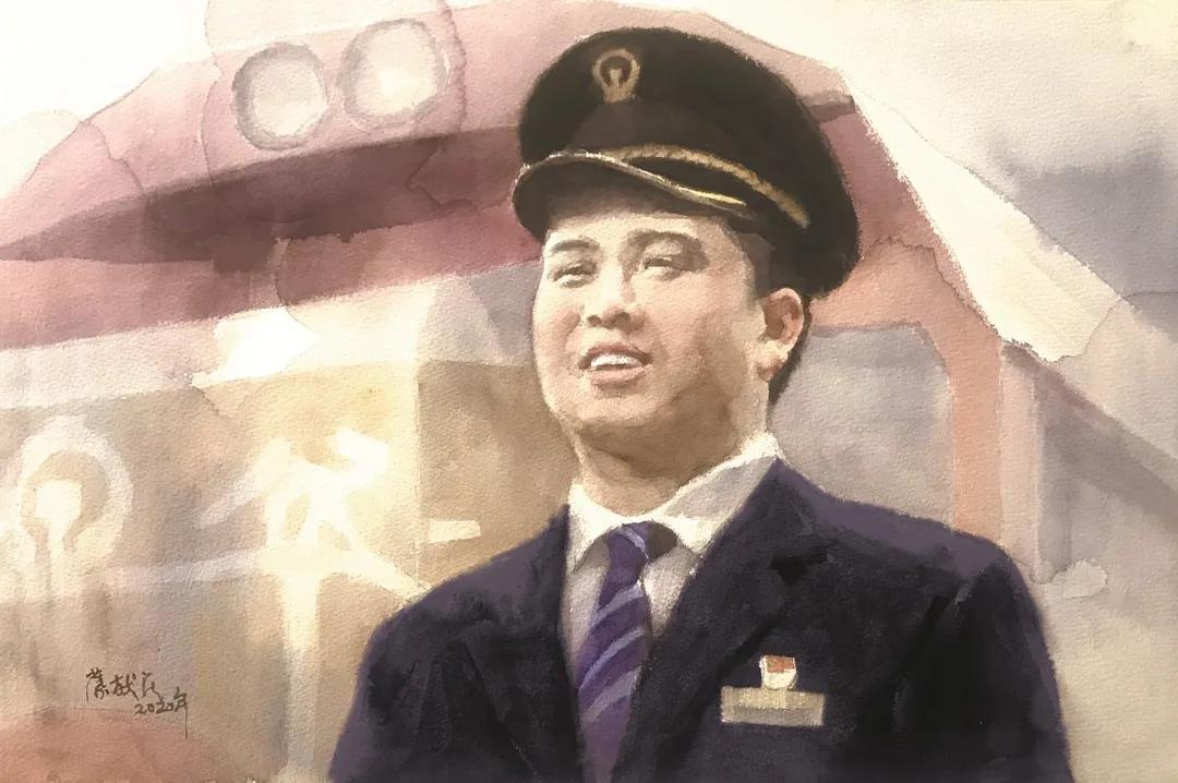 叶献民水彩画《铁路榜样》——沉稳的藏青色,作为职业气质鲜明的色彩,既折射出中国铁路建设高质量发展的进程,更反映出铁路人严谨认真、甘于奉献的精神面貌。
