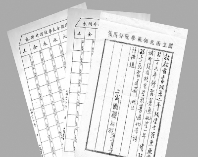 西北联合大学课堂表与齐国樑手札。