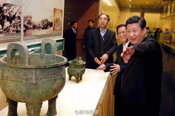2014年2月,习近平在首都博物馆参观北京历史文化展览时强调,要在展览的同时高度重视修史修志,让文物说话、把历史智慧告诉人们,激发我们的民族自豪感和自信心,坚定全体人民振兴中华、实现中国梦的信心和决心。图为在珍贵馆藏文物展台,习近平提醒忙着拍摄的记者们“小心别碰到,砸了我得负责”,幽默话语引来大家一阵笑声(图片来源:新华网)
