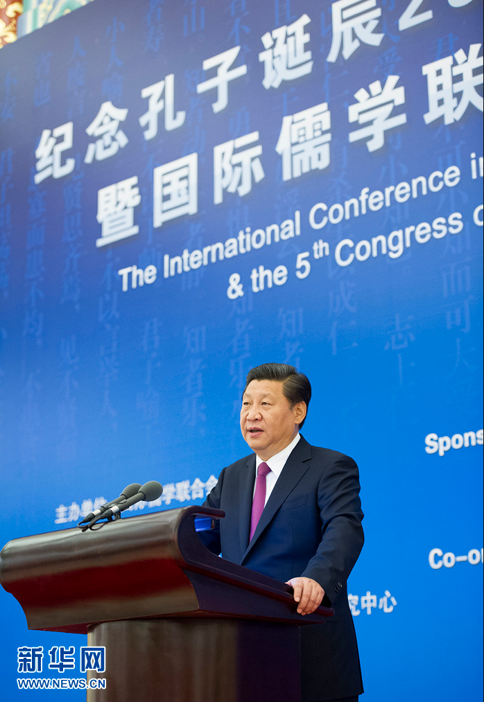 2014年9月24日,国家主席习近平在人民大会堂出席纪念孔子诞辰2565周年国际学术研讨会暨国际儒学联合会第五届会员大会开幕会并发表重要讲话(新华社记者 黄敬文摄)
