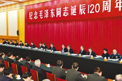 2013年12月26日,中共中央在北京人民大会堂举行纪念毛泽东同志诞辰120周年座谈会。习近平、李克强、张德江、俞正声、刘云山、王岐山、张高丽等出席座谈会(新华社记者 饶爱民 摄)