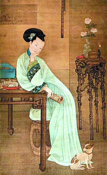 清 冷枚 《春闺倦书图》 图片选自巫鸿著《中国绘画中的“女性空间”》