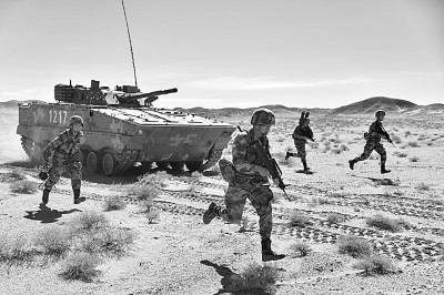 2020年5月,陆军第76集团军某旅组织实战化演练,图为装甲步兵协同发起冲击。朱斌摄/光明图片
