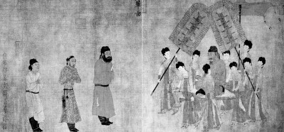 唐代阎立本《步辇图》(局部),表现了吐蕃使者禄东赞来唐迎亲并受到唐太宗召见的场面。资料图片