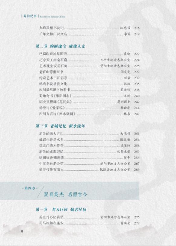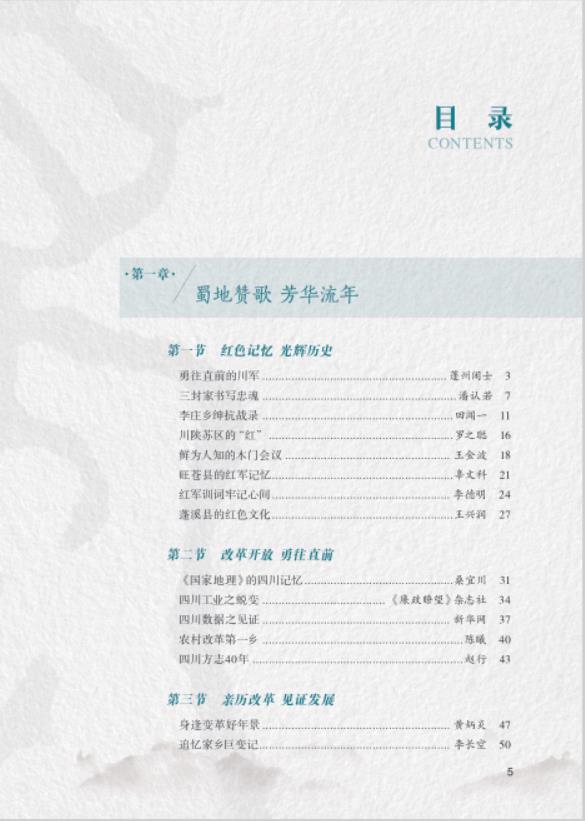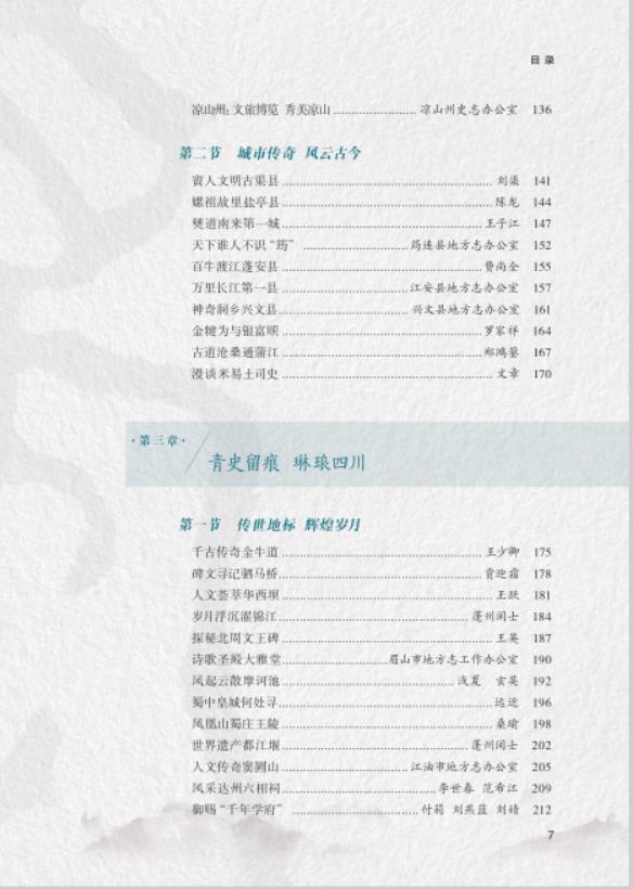 如今我们将其汇集一册,揽窥蜀地繁盛之一隅,溯古今之传奇,载时代之变迁;道往昔之峥嵘,承红色之经典;记乡音之难改,叙乡情之绵延……以多方面、多视角介绍四川的历史和自然遗产、名城名镇、文化名人、民族文化和宗教文化,同时也介绍四川的民俗和名产。纵横几千年,遍览数万里,让读者深切地感受到“蜀山高、蜀水清、蜀人多才情”。一卷在握,当可握游巴山蜀水。
