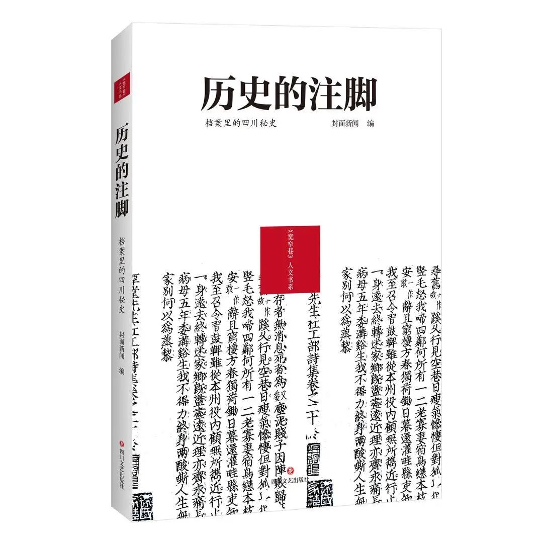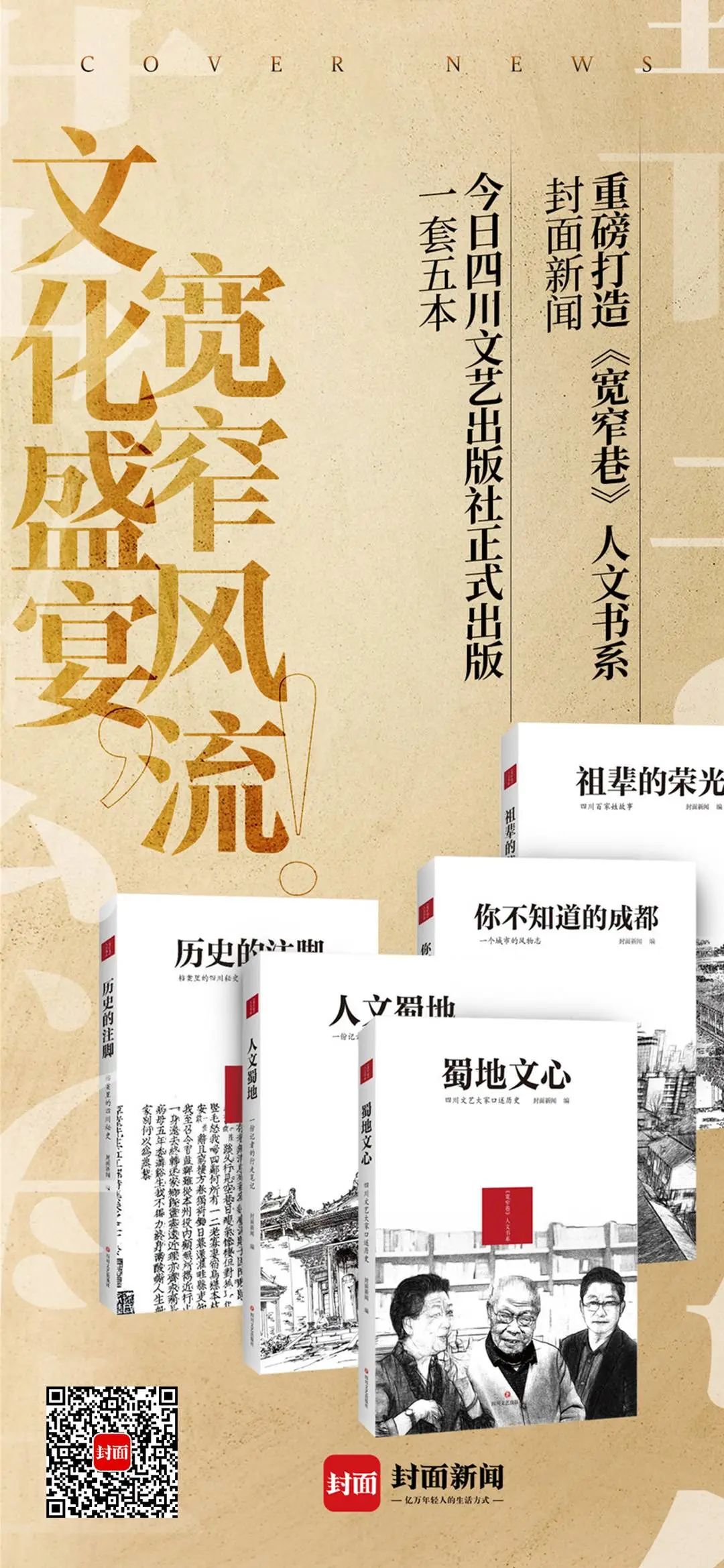 追寻历史的足迹,汲取时间的精华,才能更好地打开未来之门。2020年8月21日,由封面新闻编著的“《宽窄巷》人文书系”,由四川文艺出版社正式出版。本次推出的“人文书系”一共5本:《蜀地文心——四川文艺大家口述历史》《你不知道的成都——一个城市的风物志》《人文蜀地——一份记者的行走笔记》《历史的注脚——档案里的四川秘史》《祖辈的荣光——四川百家姓故事》。从人物到地理,从历史到现代,一篇篇荟萃《宽窄巷》副刊菁华的文章,从不同的角度,对四川本土文化进行深入地梳理和展示,是蜀中文脉一次抢救型打捞行动的宝贵收获。