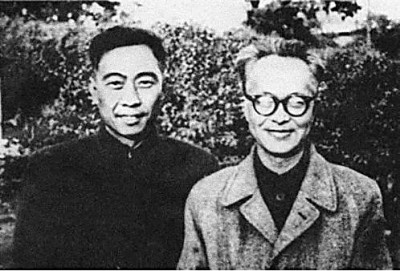 1961年,汪曾祺(左)和老师沈从文在北京中山公园。资料图片