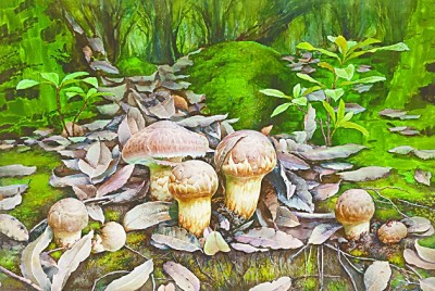 高山栎树林地。顾建新绘 图片选自《嘉卉 百年中国植物科学画》
