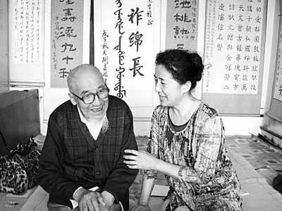 江帆对时年93岁的沈阳回族故事家杨久清进行访谈。(2011年摄) 资料图片