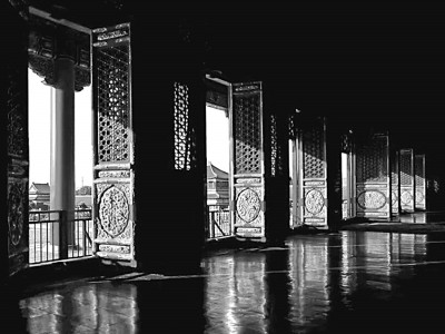 太阳光在宫殿灰色金砖地面产生的反射 资料图片