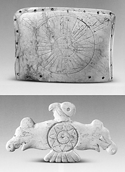 安徽含山凌家滩遗址出土的“洛书玉版”和兽翅玉鹰。