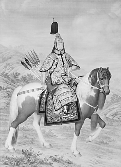 清人画乾隆皇帝(弘历)戎装骑马像轴