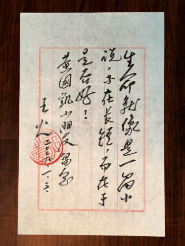 王火赠黄国凯书法
