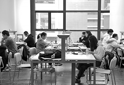 2月19日,在上海交通大学闵行校区图书馆内,学生们在自修。新华社发