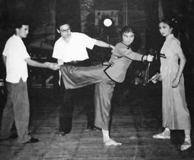 1964-1965年间,编导李承祥、王希贤和演员白淑湘、赵汝蘅正在排练《红色娘子军》。资料图片