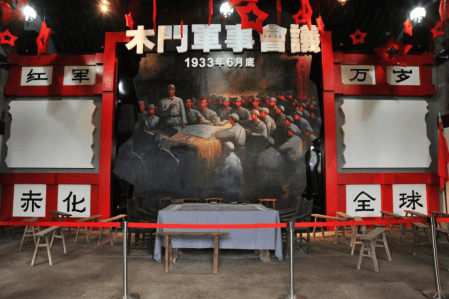木门会议旧址的木桌上