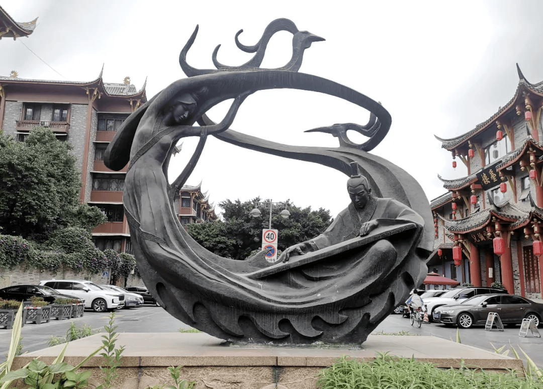 文君抚琴雕塑(蓬州闲士摄,图源:四川方志图库)