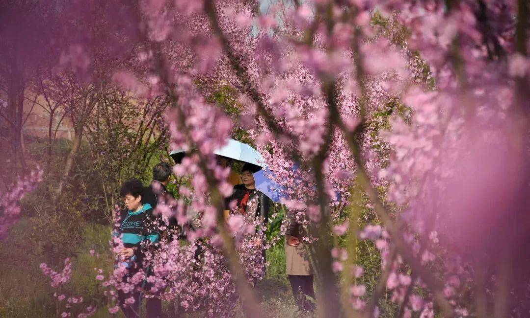 惊蛰过后,蜀中春色乍泄,以红、黄、白、绿为主,红的桃花、黄的菜花、白的梨花、李花、樱桃花、绿的小草、柳芽、麦苗,每一枝绿芽,每一波花开,每一缕阳光,都招引着五颜六色的男女老少不知疲倦地追逐那红、那黄、那白、那绿,把那红、那黄、那白、那绿连同自己装进相框,倒进“调色盘”,调成笑脸,合成爽朗的乐音和绚烂的图画,春色就在天际间流淌开来。
