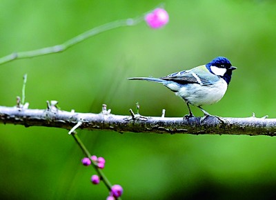 湖南省龙山县,花儿开放,引来小鸟“闹春戏花”。新华社发