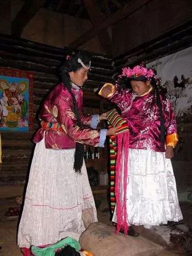 摩梭人信奉喇嘛教,也同样信奉母湖,神山,祖先等自然之物,这实际是达巴教义中祖先祟拜和自然祟拜的内涵扩展。诸如留下了每逢初一上山烧香,逢十五转山转海的遗风,各个季节祈求风调雨顺五谷丰登的祭祀活动,每年一次的只有妇女参加的“斋月节”,每日几餐前的“处度”祭祖先,以及各种独特的节庆。