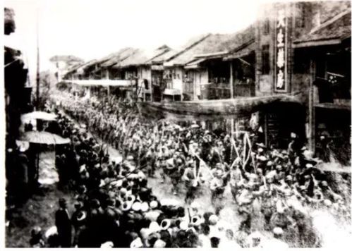 1950年2月1日,中国人民解放军举行入城式途经雅安中大街,民众夹道欢迎(图片来源:搜狐历史)