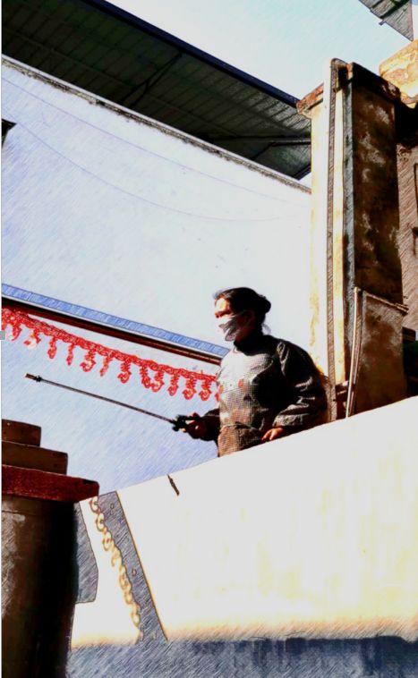 不仅给老院子消毒,进入老院子的每个人,老妹都要对其认真消毒,住在老院子的人出一次门回来就消,就是妹夫买菜回来老妹都要上上下下喷一次消毒水,我们住在外面的偶尔回一次老院子,她更是仔仔细细全面消毒,喷得直到她觉得满意了才停止下来,弄得我们都小心翼翼。差不多二十天以来,老院子防疫消毒都是这样操作,老妹始终把这当成重中之重,认真得一丝不苟。