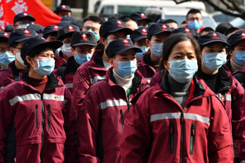 1月28日早上,宜宾市第一批赴武汉医疗救援队正式出发(图片来源:川报观察)