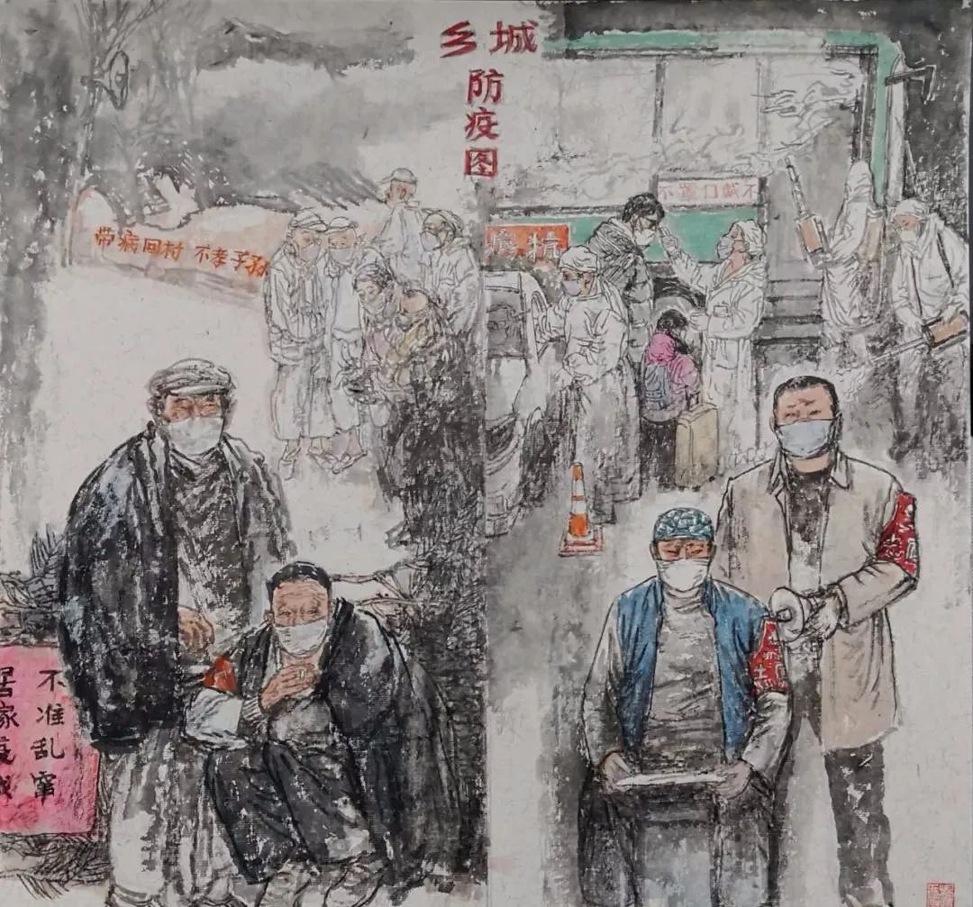 《城乡防疫图》 中国画 杨循(图片来源:巴蜀画派集团)