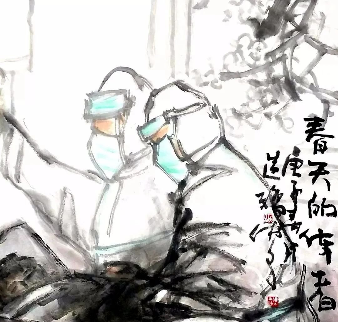 《一定打赢疫情防控战》 刘浩然(大连工业大学艺术与信息工程学院)(图片来源:四川福宝美术馆)