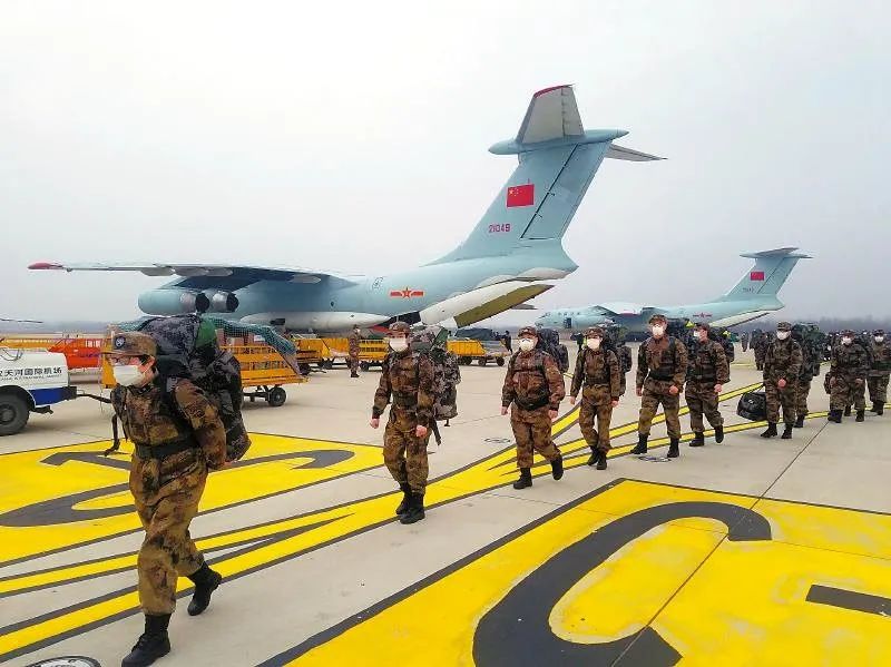 2月2日,空军出动8架大型运输机空运军队支援湖北医疗队抵达武汉天河机场( 新华社发,龙德勇 摄,图片来源:四川日报)