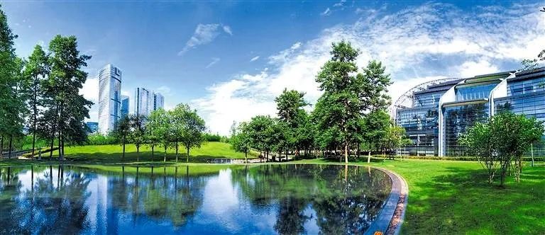 “城在绿中、园在城中、城绿相融”的公园城市景象正逐渐成为现实,图为绿意盎然的成都金融城(成都日报摄影部 供图,图片来源:成都日报)