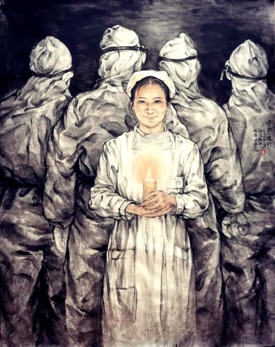 她擦干泪后转过身,咬紧牙拿起笔,在队友的防护服身上写下“中国加油!武汉加油!”