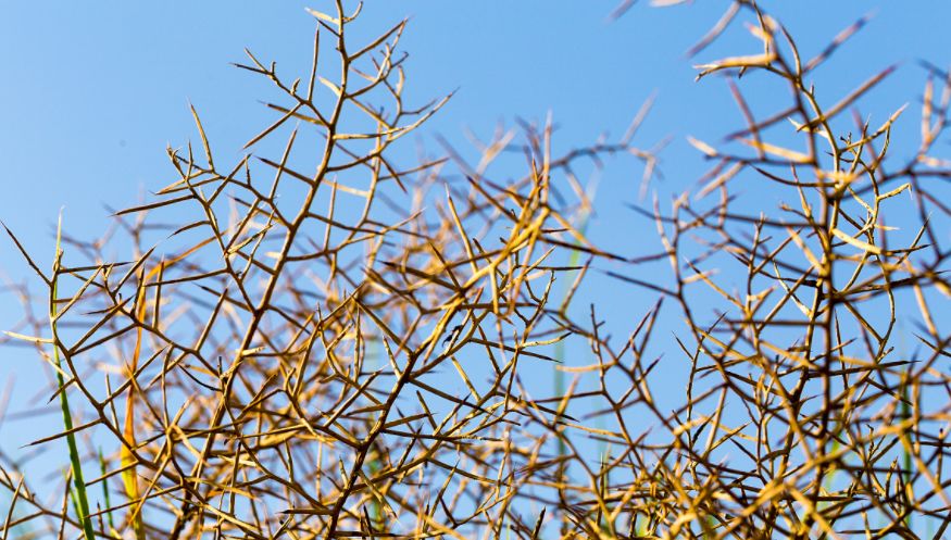我在草丛中寻找有毒的草叶,针尖般的荆棘划伤我的胳膊,鲜红的血汁像一朵朵冠状花朵,在我的皮肤上盛开。