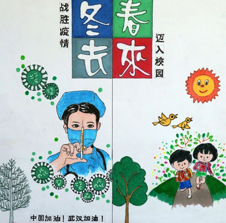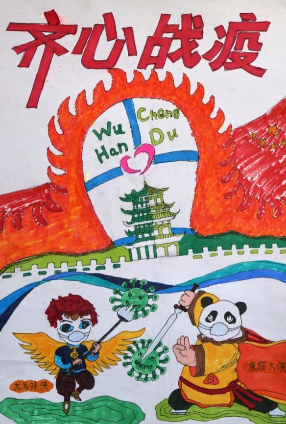 《齐心战疫》 38cm×26cm 王秀行(8岁) 成都市锦官驿小学