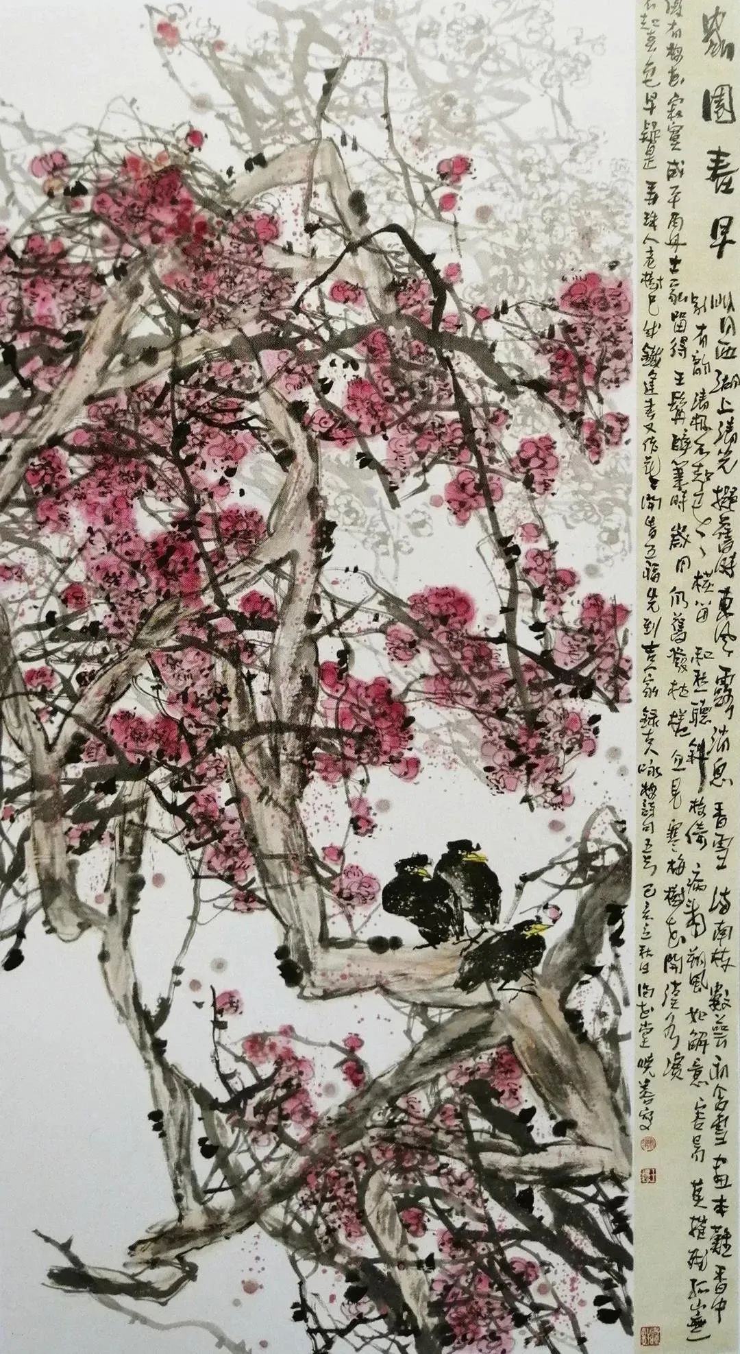 家园春早 国画 王晓蓉(图片来源:四川省老年书画研究会)