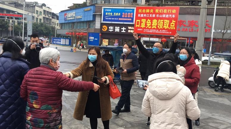 乐山琪迹汽车有限公司董事长余勋向夹江县市民捐赠口罩(图片来源:四川在线)