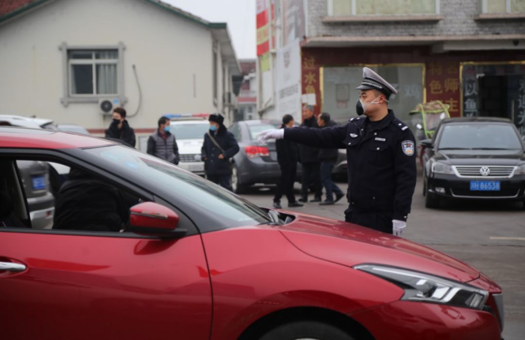 众志成城战新冠。图为民警正在指挥车辆(2020年2月1日摄于广巴高速旺苍东出口疫情防控监测点,唐福升 摄)