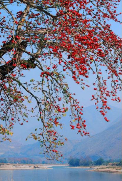 我第一次见到木棉花,是1979年2月来到广西中越边境,参加对越自卫还击作战。那里到处长着高大的木棉树,春天,木棉花会傲然盛开,朵朵花蕊,宛如燃烧的红色火焰,非常壮观。木棉树开花是与众不同的,花开时节没有一片树叶陪衬,除了树干树杈外,就是红艳似火的花朵在空中燃烧,向世人尽情展现着自己的激情。